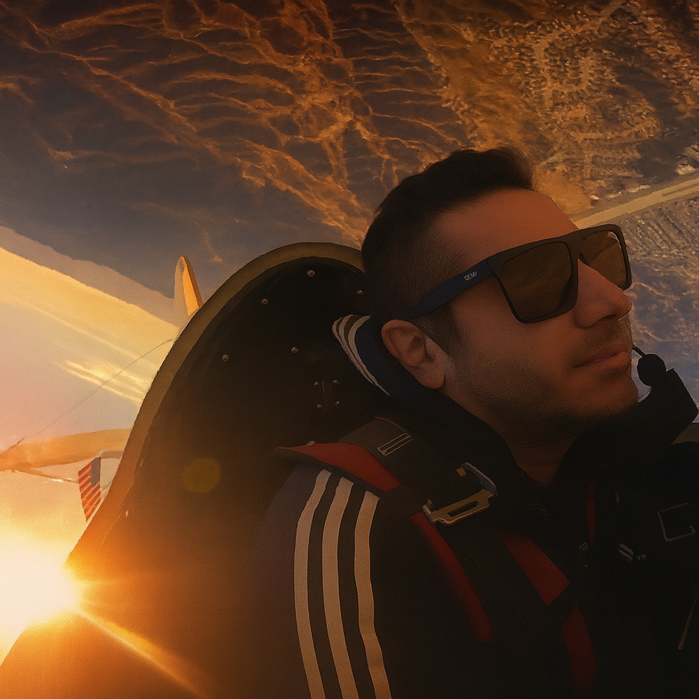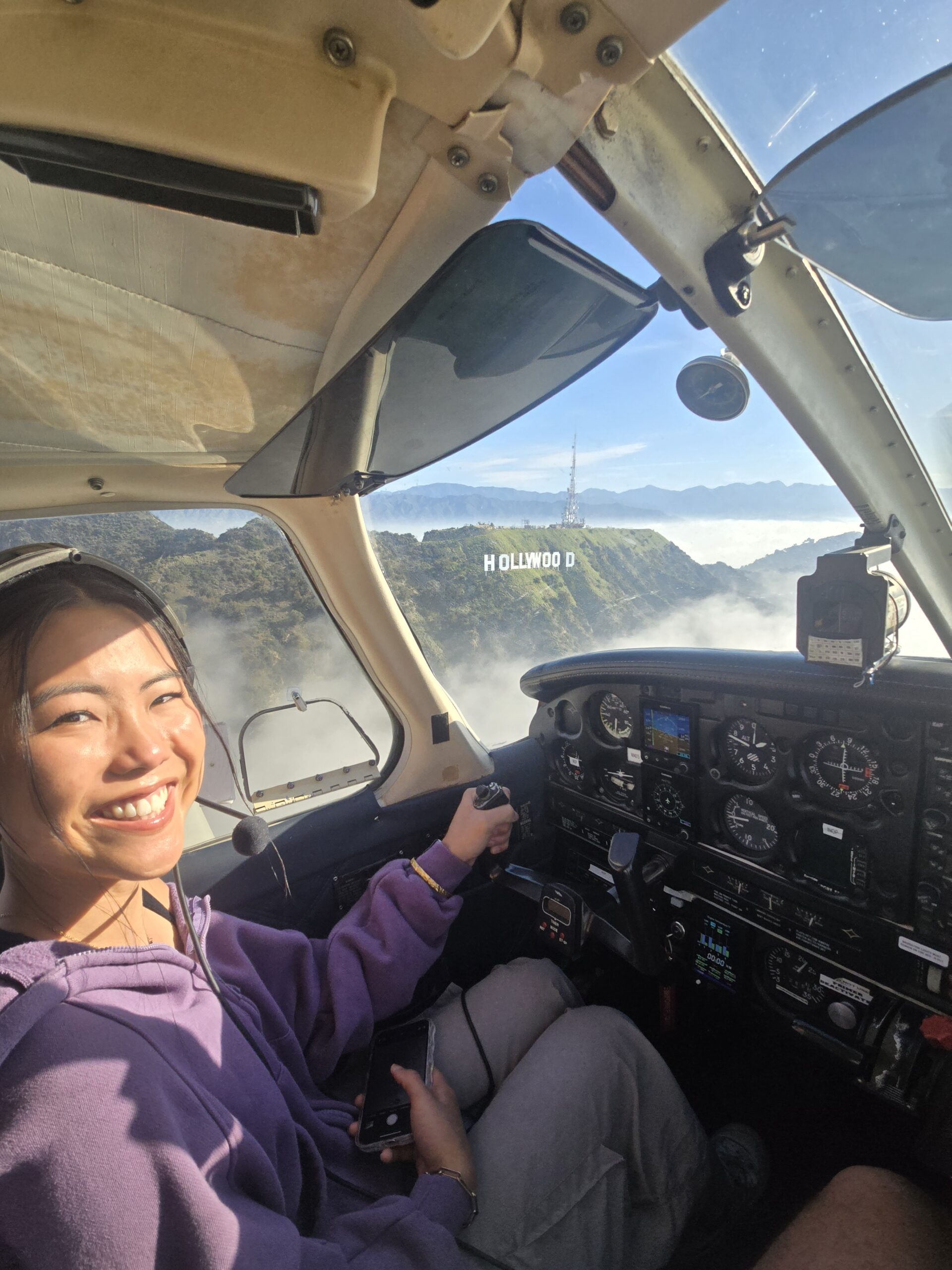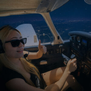 Gallery Female student pilot at Fly Over LA prepares to pass the Hollywood sign on a discovery flight in Van Nuys, California Female student pilot smiling getting out of aircraft after first flight. Fly Over LA’s chief instructor performs a perfect barrel roll with a scenic sunset behind him in a Pitts special S-2B biplane Young couple on a date night flight over Van Nuys Student pilot takes a moment to give thumbs up to the camera while piloting a Cessna over Los Angeles at night Couple in aircraft